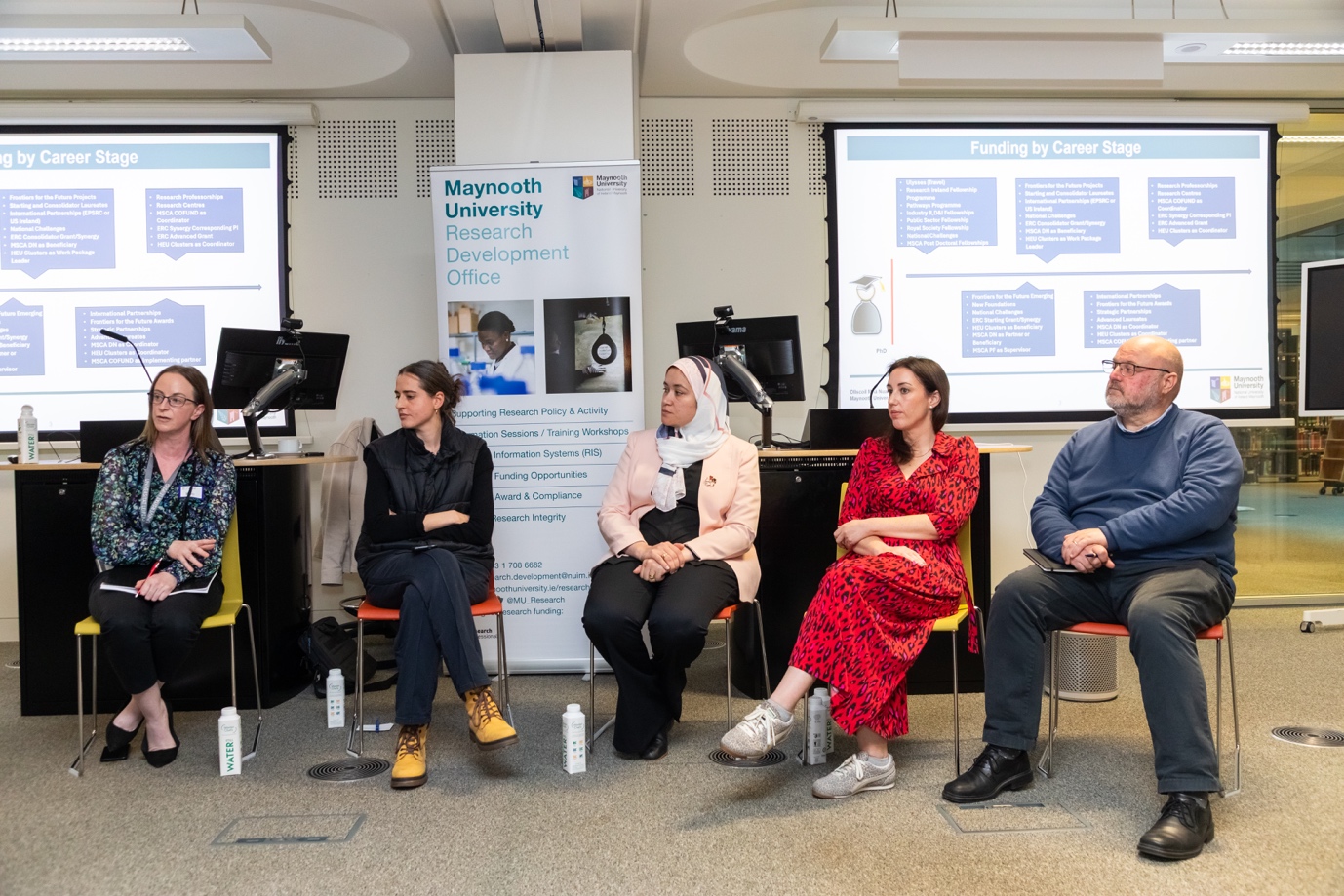 Behind the scenes, Maynooth postdoc liaison Juliette Davret worked closely with the event organisers, especially Noreen Lacey (from the Research Development Office – RDO), to coordinate the event. Juliette helped shape the panel discussion, bringing in Rob Kitchin to share his perspective on ERC funding and supervising a research team.