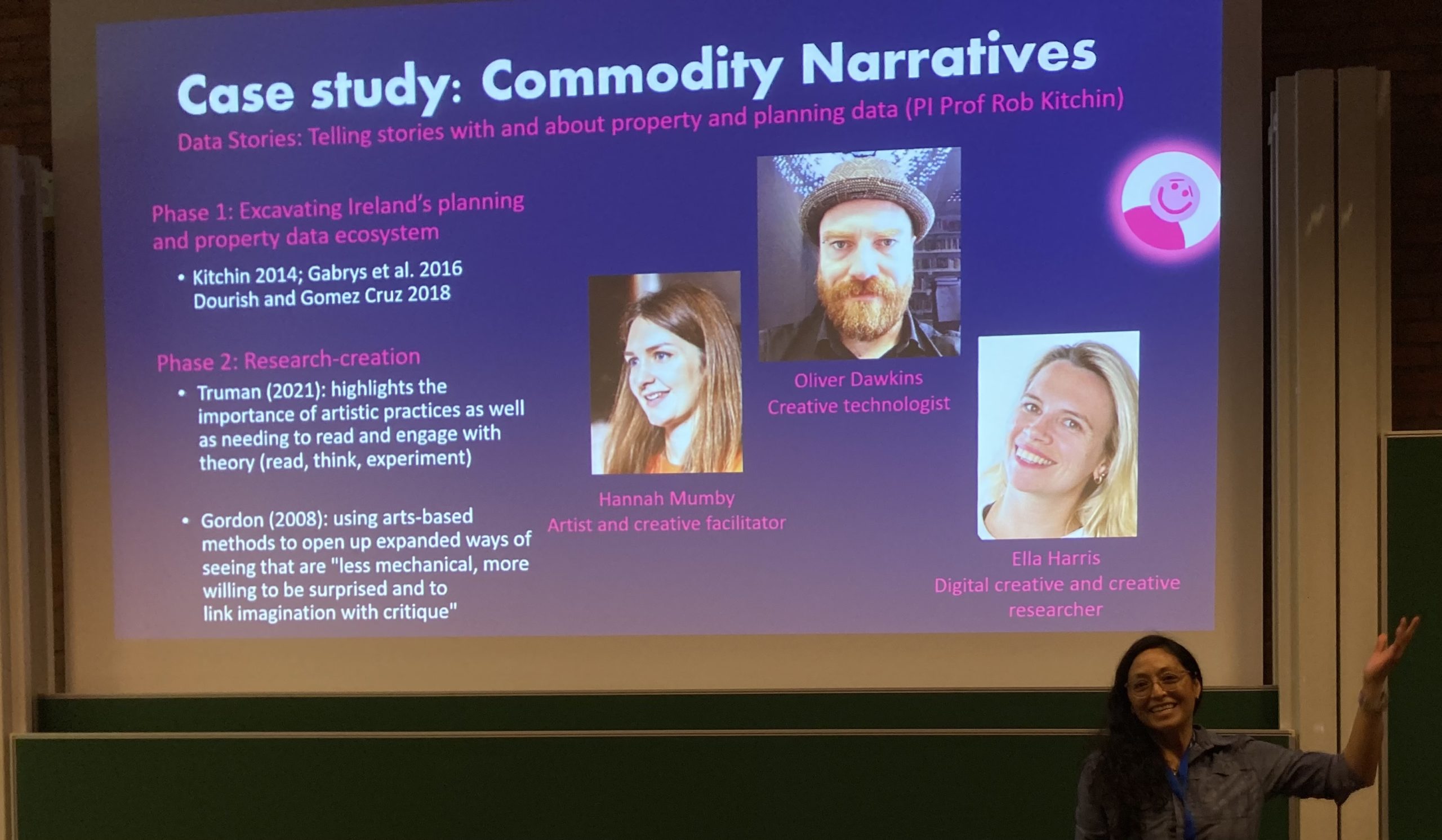 Our Commodity Narrative’s paper, Playing the Housing Market:  Creatively exploring housing commodification through a gamified spoof property website was scheduled for the second day of the conference. It was one of five papers the session co-organised by Bettina Van Hoven and Julia Munuera Garcia from University of Groningen in a special session titled Gamefying Geography: Play, Participation, and Pedagogy in the Geographical Curriculum. Though the session was designed to focus on the role of games to teach concepts in Geography, our Commodity Narratives work appealed to the organisers because of their long-standing interests in the use of arts-based methods and creative approaches to research.